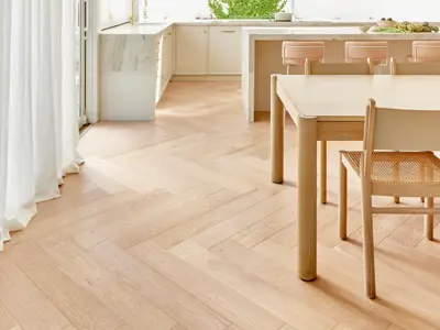 Oak timber flooring offers an extensive palette - from soft, pale blondes to rich, moody chocolates and almost-black tones. Australian native timbers such as Blackbutt and Spotted Gum, on the other hand, bring more red and yellow undertones, giving a distinctly local warmth. When deciding on colour, it's crucial to consider how the flooring will relate to other elements in the home, particularly cabinetry finishes. Timber tones shouldn't clash - they should either complement or contrast (dark timber floor with lighter cabinetry).
