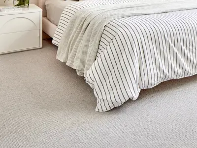 Fibre choice is equally important – most clients opt for either 100% wool or solution-dyed nylon with Polyester or PET carpets becoming a popular budget friendly option. Each has beautiful options across all pile styles, though personally, I find loop pile carpets look best in pure wool for a natural matte finish (synthetic versions can appear slightly shiny or commercial looking). Choices Flooring's Windsor Wool, Temuka and Illoura ranges are beautiful selections for bedrooms.