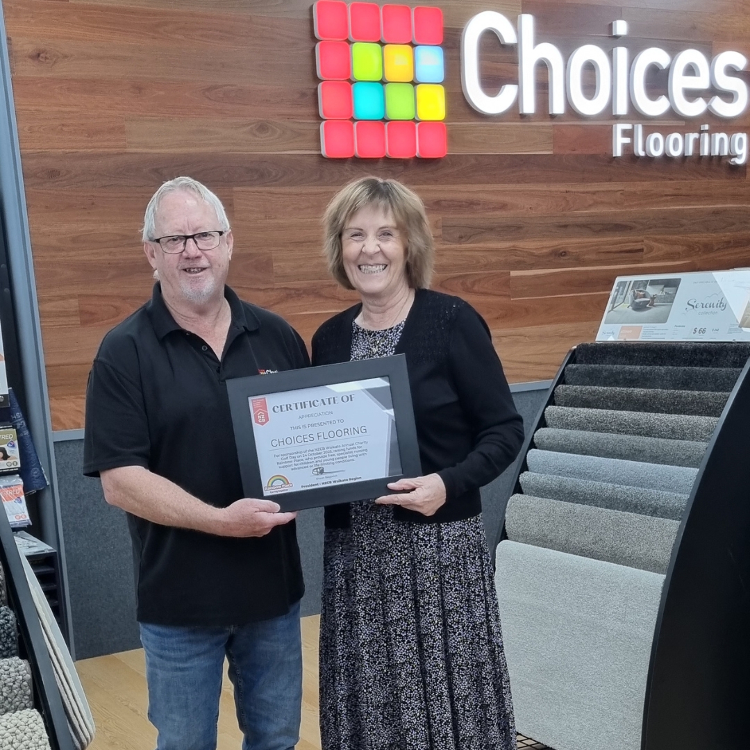 Choices Flooring Hamilton contributed as a sponsor at the NZ Certified Builders Association Golf Day, an industry event involving approximately 90 builders. The sponsorship supported a charity auction benefiting Rainbow Place, which provides specialist nursing care for children and young people living with life-limiting conditions. A certificate of appreciation was presented in recognition of this contribution to a meaningful local cause. Our team takes immense pleasure in supporting initiatives like this within the community.